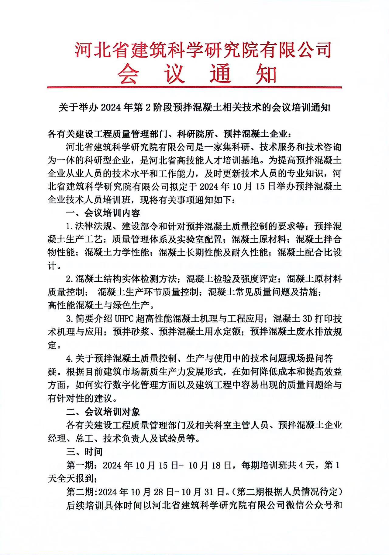 關于舉辦2024年第2階段預拌混凝土相關技術的會議培訓通知