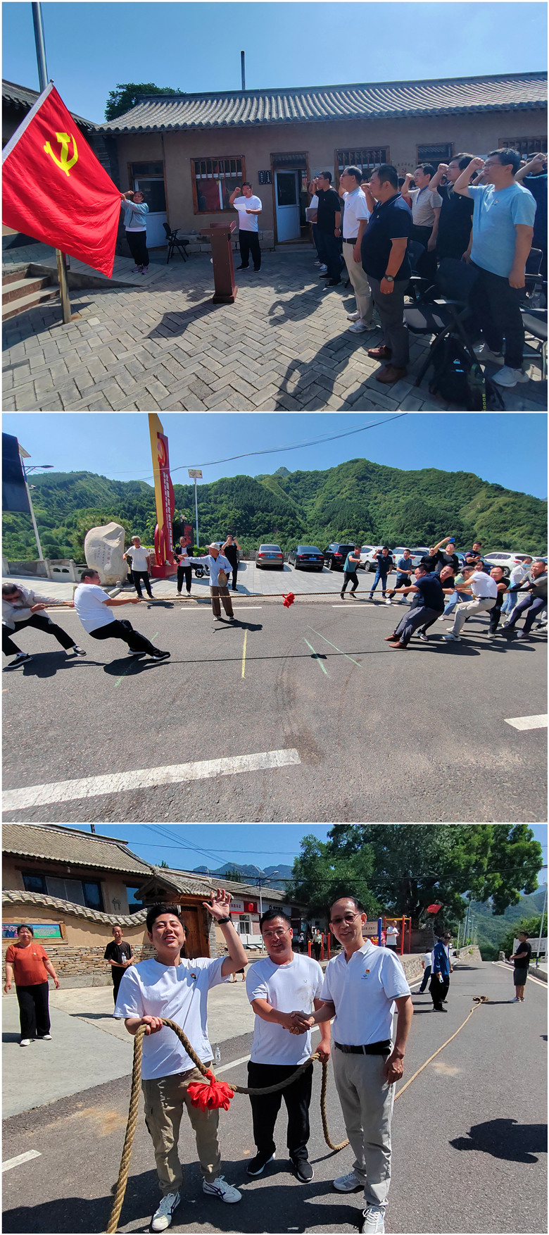 結(jié)構(gòu)所黨支部與顧家臺黨支部開展聯(lián)合黨日活動(dòng)。顧家臺村支部書記顧錦成同志帶領(lǐng)全體黨員在黨旗下莊嚴(yán)宣誓,重溫入黨誓詞。隨后,兩個(gè)支部的黨員開展拔河聯(lián)誼活動(dòng)。