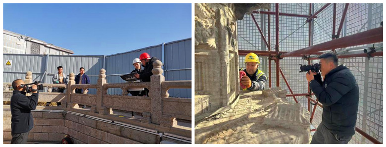 2023年12月8日,趙州陀羅尼經(jīng)幢保護(hù)工程施工現(xiàn)場(chǎng),我公司技術(shù)人員攻堅(jiān)克難、不畏嚴(yán)寒,依然奮斗在施工崗位。在新搭設(shè)的腳手架上,他們牢記文物保護(hù)方針,采用科學(xué)、合理的技術(shù)手段對(duì)石質(zhì)文物表層結(jié)殼、結(jié)膜污染進(jìn)行清理,并依照方案核對(duì)塔身各類殘損病害,為后期的修繕工作做足準(zhǔn)備。